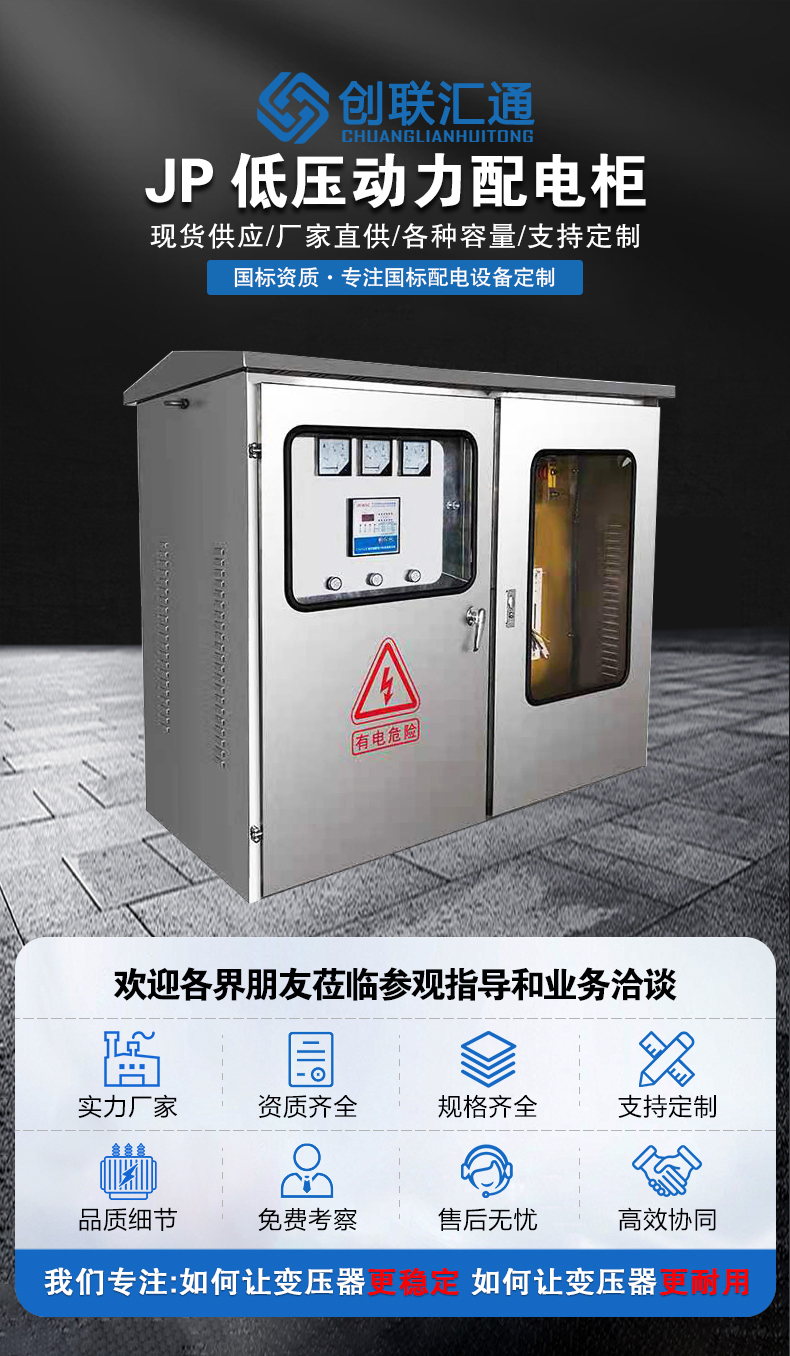 JP系列戶外配電無功補償綜合柜適用于0.4kV電壓等級的電能分配、計量、保護和無功功率自動補償。