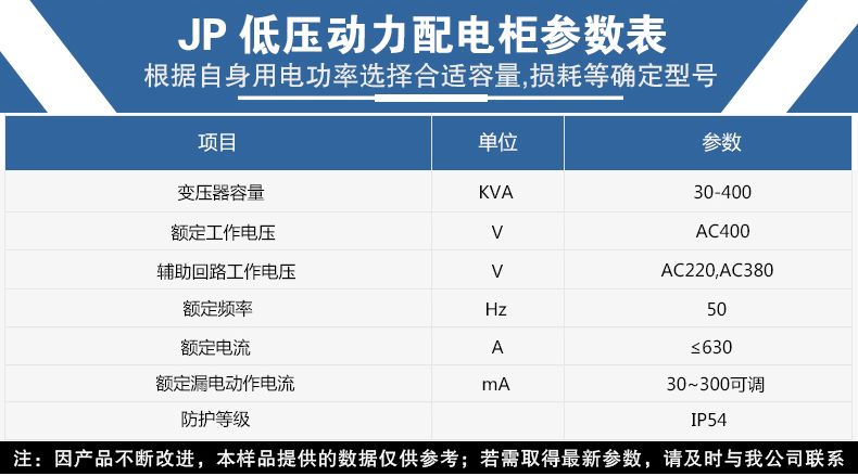 3、 配用 變壓器容量分別為: 10、20、30、50、63、80、100、125、160、200、250、315、400、500、630(kVA