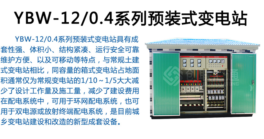 YBW-12系列預(yù)裝式箱式變電站YBW-12系列預(yù)裝式變電站,是將高壓電器設(shè)備、變壓器、低壓電器設(shè)備等組合成緊湊型成套配電裝置,箱體材料采用槽鋼、鋁合金與阻燃型復(fù)合材料制作而成。