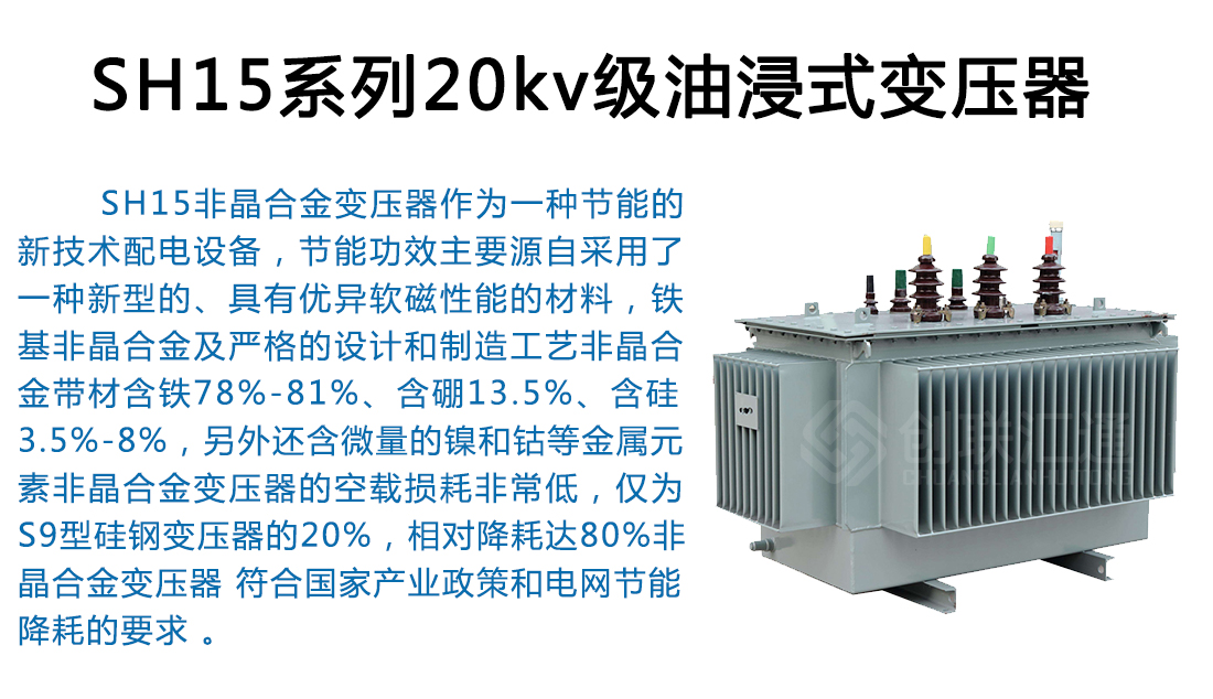 SH15非晶合金變壓器作為一種新一代節能產品,可以普遍適用于住宅小區、學校、工礦企事業單位以及社會公共設施。可在戶內(外)使用,容量在315kVA 及以下時可安裝在桿上,海拔高度不超過1000m。